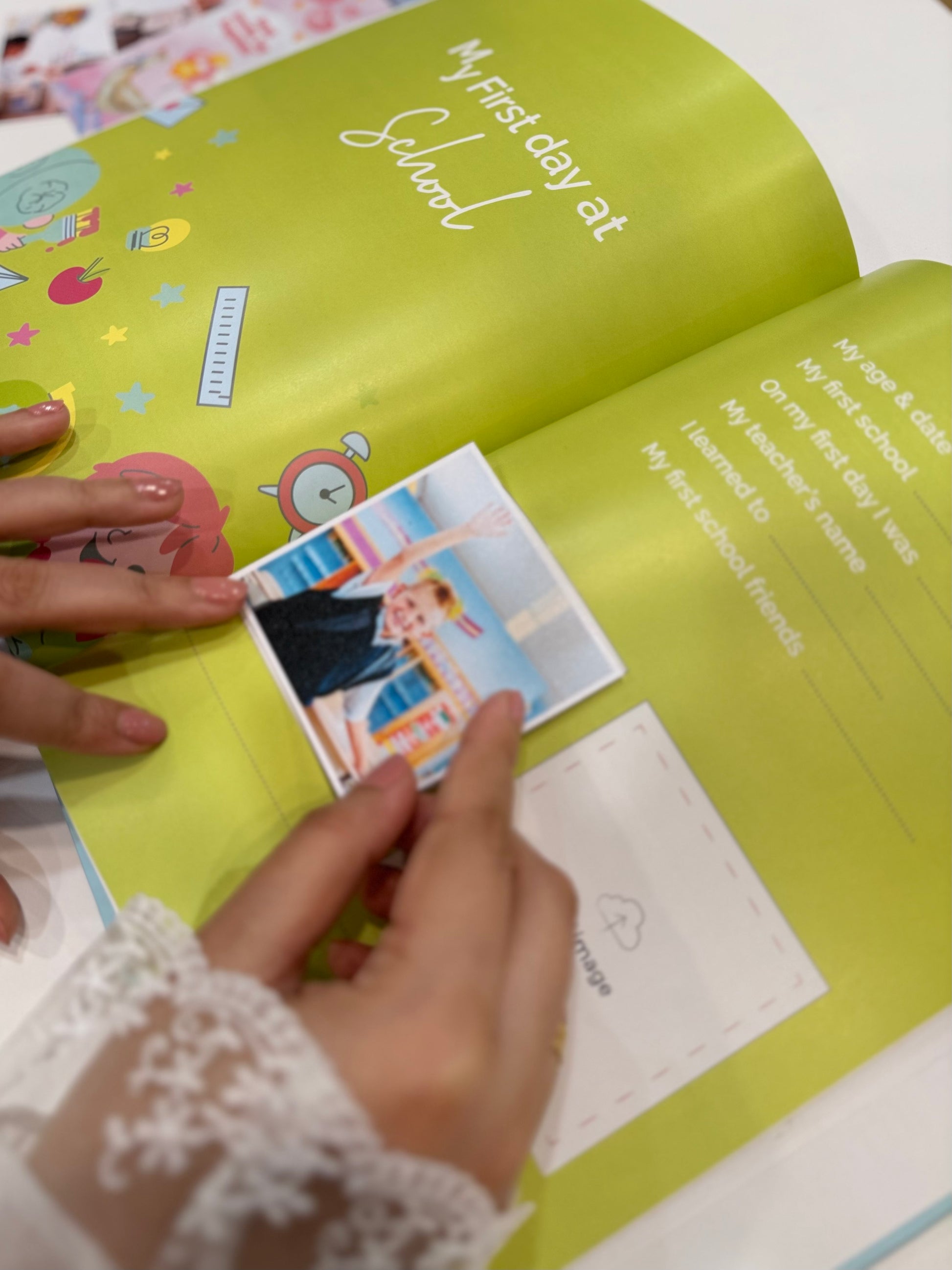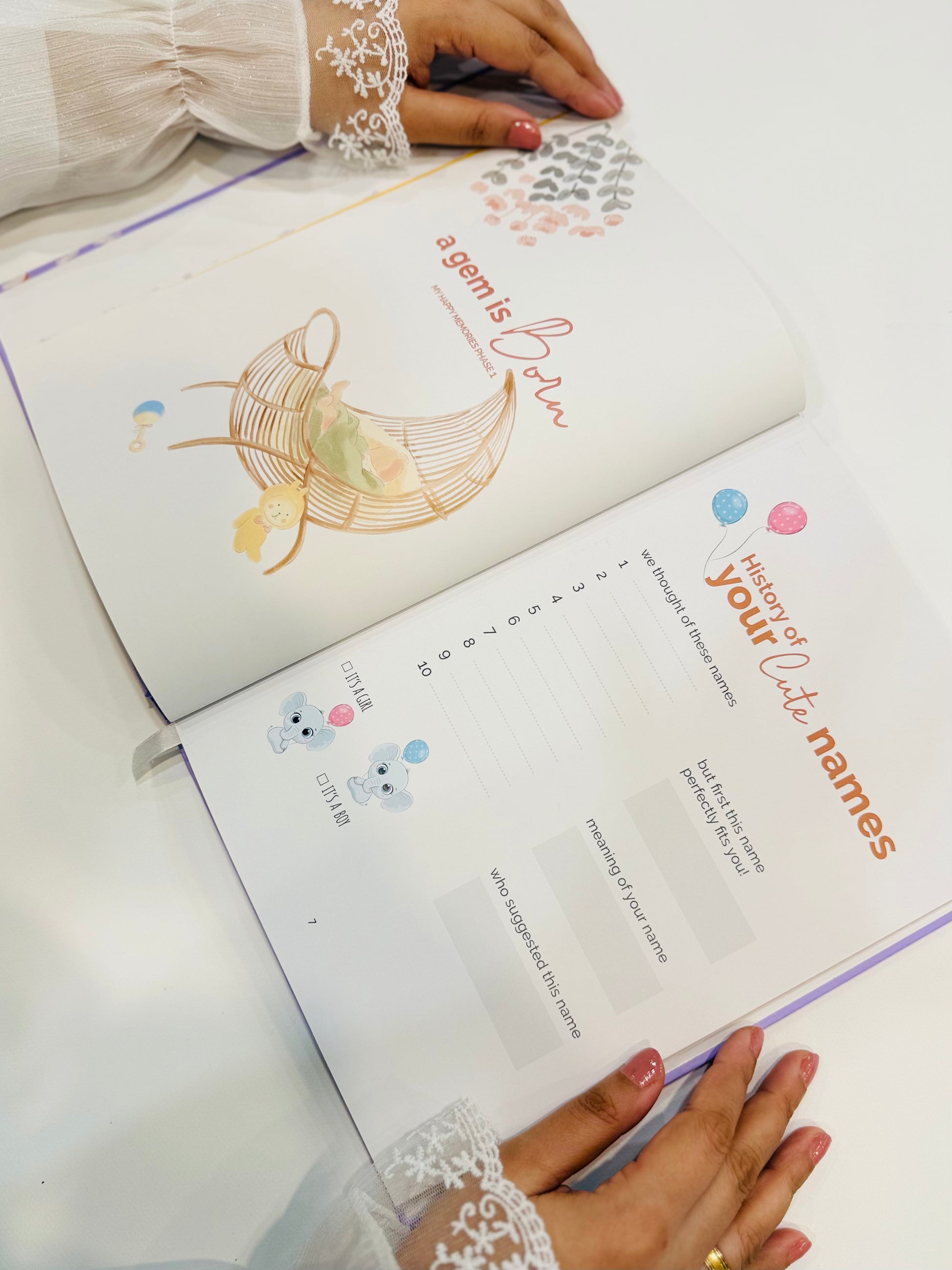 Baby memory book is a cherished keepsake designed to capture and preserve the most precious moments and milestones of child's first 5 years. Our baby books have different style of covers and fillings. A baby memory book is a cherished keepsake designed to capture and preserve the most precious moments and milestones of a child's early years. It serves as a beautifully crafted repository of memories, photographs, and mementos that parents, guardians, and families lovingly compile to create a tangible record of the child's growth and development.